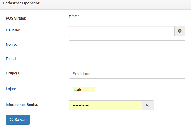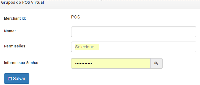 It is mandatory to create at least one group before inicitate the sales using virtual POS. The group determinates the operator’s access level.
