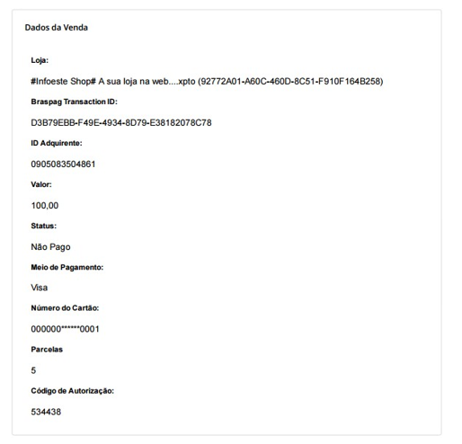 | Installments | Installment number. In case of recurrency transaction, this field will not be showed. | Yes |